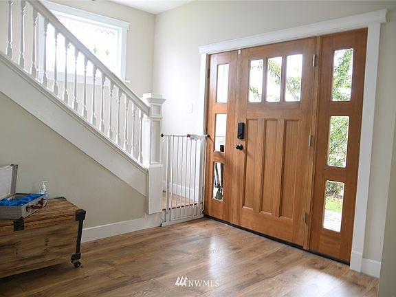 This stunning 1908 2-story home has been completely remodeled and is move in ready! Upon entry you will be greeted with tall ceilings, a bright and open living room that adjoins to a spacious dining area & leads to your new in home office . The kitchen features a gas stove, soft close cabinetry, stainless appliances and ample counter space ready to create your next feast! Upstairs there are three beautiful bedrooms, two with views of the Cascades, and a lovely master suite with en-suite bath.