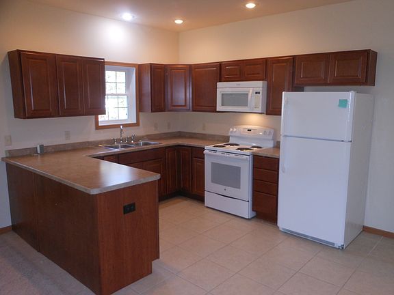 .This 2 bedroom, 2 bath, single-level Townhome with NO steps, Wheelchair accessible. 1180 square feet of living space, large walk in closet, Master bedroom with step in shower, large kitchens, washer dryer hook ups, tile flooring, patio, stove, refrigerator, dishwasher and built in micro. Rent also includes all snow removal and yard care.. This unit includes an attached 2 car garage.