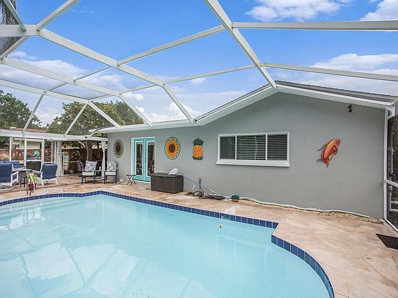 The keys are yours to this completely renovated and furnished 3/2 home just a short drive away from Clearwater's stunning beaches. Talk about curb appeal! This home features a paved driveway and beautifully manicured landscaping. The home also includes solar panels, paid in full! The entry leads to a large formal living room and adjacent dinning room. The spacious kitchen boasts maple cabinets, granite countertops, and stainless steel appliances. Don't worry about tracking in beach sand as this home has ceramic tile throughout but the bedrooms are carpeted for your comfort. The large master suite includes an ensuite equipped with his-and-hers sinks. The family room overlooks the pristine, heated pool and opens up to the enclosed screened porch. The backyard is enclosed with custom fencing, includes a custom deck, and has ample green space for many possibilities.