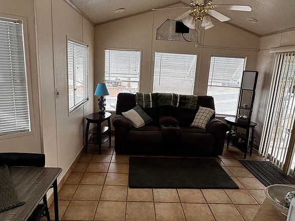 1993 with 400 Sqft living space, a NEW ROOF, outdoor shed for all your storage and a large enclosed patio that opens up to the rest of this huge lot, awaits you. This back patio is one of the biggest in the park. Situated right off the corner of Roadhaven's beautiful golf course. makes the back yard views on this home even better.
