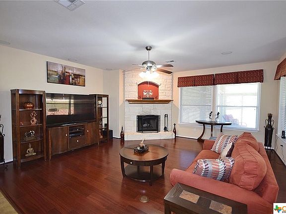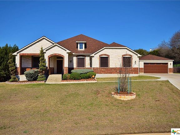 Beautifully updated split floor plan home with 4-car garage and pool on .78 acres in The Ridge! Large front porch welcomes you inside this open floor plan home. Custom wood front door with transom window and sidelights leads to the tiled entry. To the right of the entry are the spacious formal living and dining rooms, which feature crown molding. To the left of the entry is the study with French doors and a ceiling fan. At the rear of the home is the oversized family room, which boasts ceiling fan, surround sound speakers, hardwood flooring, and floor-to-ceiling stone fireplace with hearth and wood mantle. Family room is open to the spacious kitchen, which includes custom 42-inch cabinets, breakfast bar, granite countertops, undermount sink with gooseneck faucet, walk-in pantry, recessed lights, and custom pendant lighting. Stainless steel appliances include cooktop, dishwasher, and microwave/oven combo. Breakfast nook features chandelier and door to back patio. Oversized master bedroom boasts recessed ceiling, fan, recessed lights, and large walk-in closet. Gorgeous master bath been completely remodeled and has dual sinks, framed mirrors, granite countertops, sconce lighting, wood-look tile flooring, and large tiled shower with rain shower head and pebbled floor. Three more bedrooms all feature ceiling fans, and two more bathrooms have shower/tub combos. Laundry room has built-in cabinets and room for a full-sized refrigerator. Between the laundry room and garage is a convenient mud room. Spacious sunroom is enclosed in glass, and is perfect for entertaining, with ceiling fan, recessed lighting, heating and air conditioning. Sunroom leads to the large wooden deck, an additional covered patio, and outdoor kitchen with built-in barbecue grill. Amazing parklike back yard is fully fenced, has mature trees for privacy and an inground gunite pool with pebbled concrete decking and rock waterfall. Bonus features include built-in sprinklers, alarm system, low-flow toilets, garage door openers, gutters, energy-saving solar screens, side entry 2-car attached garage, extra deep 2-car detached garage, and beautiful views! Perfect location in the Ridge, an executive lake view neighborhood, near Dana Peak Park at Stillhouse Lake. Country feel, yet convenient to shopping and restaurants. Schools are Skipcha Elementary, Union Grove Middle and Harker Heights High! Call for your showing appointment today! Directions: From Hwy 190 E, take 2410/Knights Way exit, turn R (south) on 2410. About a mile down, you’ll pass HHHS. One more mile, turn R on Comanche Gap. One mile down, turn L into the Ridge on Lakefront Drive. Then 2nd R on Cayuga and 1st L on Sandy Point.