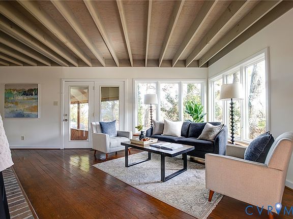 Located in the highly sought-after Westover Hills neighborhood, this stunning home offers seasonal views of the James River, downtown Richmond, and The Carillon. Perched high on a hill just one house from Riverside Drive, it feels like living in a treehouse by the river, surrounded by sweeping vistas and a tranquil, private setting. Originally designed, built, and lived in by Richmond architect Woody Palmore, this contemporary cottage has had only two owners in its history. Inside, you’re welcomed by wide-plank pine hardwood floors and an inviting open layout, where the living room, dining area, and kitchen flow seamlessly together, perfect for entertaining or relaxed family living. The home is designed to blend indoor and outdoor spaces effortlessly, featuring expansive decking and porches throughout. Enjoy peaceful mornings or cozy evenings on the screened-in porch just off the living room, surrounded by treetops. Upstairs, you’ll find two spacious bedrooms and two full baths, each offering privacy and wooded views. Additionally, a lofted space for a den, office, or sitting room. The second-level open porch provides views of the river and city skyline, an ideal spot to watch fireworks over The Carillon. The finished basement adds even more flexibility, with a large open area, an additional full bath, perfect for a home office, playroom, media room, or even a third bedroom. Don't miss the wine cellar on the lower level. Freshly painted throughout, with major systems recently updated, this home beautifully combines architectural charm, modern comfort, and Richmond’s natural beauty. Enjoy close access to the James River Park System, Forest Hill Park, and the nearby river trails. Just a short distance from local favorites like Stella’s Market, Blanchard’s Coffee, Janet’s, Riverside Tavern, and Little Nickel, this exceptional property offers the perfect balance of nature, neighborhood, and convenience. Don’t miss your chance to experience this one-of-a-kind Richmond retreat, schedule your showing today!