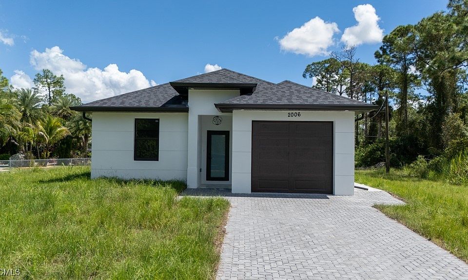 Brand-new modern single-family home featuring 3 bedrooms and 2 bathrooms on a spacious 0.5-acre lot in Alva. This new construction offers an open-concept layout with a designer kitchen that includes beautiful countertops, soft-close cabinets, and stainless steel appliances. The owner’s suite boasts a walk-in closet and a private bath with a tiled walk-in shower. Additional highlights include a split-bedroom floor plan, an interior laundry room with a washer and dryer included, and an attached 1-car garage. The oversized lot provides ample space for a pool, workshop, or RV/boat parking— all with NO HOA or deed restrictions.