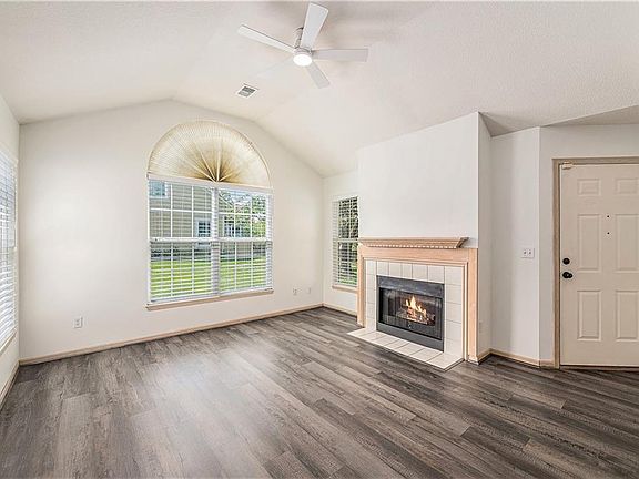 Cozy gas fireplaceEn-suite bathroomGranite countertopsQuaint patioSubway style backsplashVaulted ceilingsSpacious primary suite