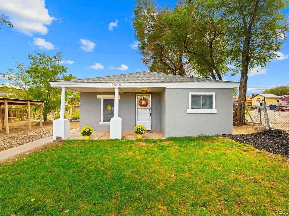 Completely remodeled 2 Bedroom 1 Bath rancher. Situated on 3 oversized city lots! Biggest lot on the block. Brand new kitchen with top of line cabinets, countertops and backsplash. Brand new stainless steel appliances. New bathroom with marble tub surrounding and vanity. Spacious living dining combo. Bedrooms have new paint and lighting. Newly landscaped front yard with grass/ mulch. This home has it all including a 2 year home warranty that covers all major components. Don’t miss your chance to own a fully remodeled home at a steal of a price. Call today.