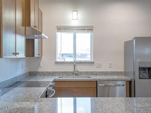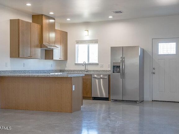 This gorgeous custom Duplex designed by Kirsten Snyder has incredible attention to detail offers 1,435 SF, 3 bedrooms and 2.5 baths each. Find impressive 9' ceilings, polished concrete floors downstairs, wood look LVP floors upstairs. Thoughtful floor plan has large open great room and powder room downstairs. Upstairs find the primary suite + large bedrooms. Primary features dual vanities and walk-in shower. Kitchen is an entertainer's dream: lovely cabinets, quartz counters, breakfast bar seating, and open to the great room. Brand new appliances include Refrigerator, Washer and Dryer (and an upstairs laundry!) Each unit has a private fenced back yard with desert landscaping in front and back. And each unit includes a 1-car garage and a long driveway for more parking. Bonus! No HOA! Custom Build Energy Features: