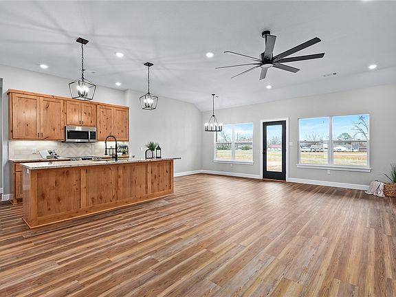 Experience modern living in the Magnolias at The Ranch. This brand-new 3-bedroom, 2-bathroom home, complete with a dedicated office space, effortlessly combines comfort, style, & practicality. The beautiful open kitchen with custom-stained cabinetry, a large modern island, & a generously sized pantry—perfect for casual meals & entertaining. The sleek granite countertops elevate the space, making it a true heart of the home. Retreat to a primary suite, where you'll find a luxurious soaker tub & a spacious, custom-tiled walk-in shower. Every inch of the living areas is adorned with beautiful luxury vinyl plank flooring, offering both beauty & durability. The bathrooms are a showcase of beautiful tile craftsmanship, while the bedrooms provide ultimate comfort with plush carpeting. Step outside to the covered patio & enjoy the outdoor living space for relaxation & entertaining. The private, fully fenced backyard ensures a peaceful retreat. Don’t miss the opportunity to call this beautiful designed new home yours.