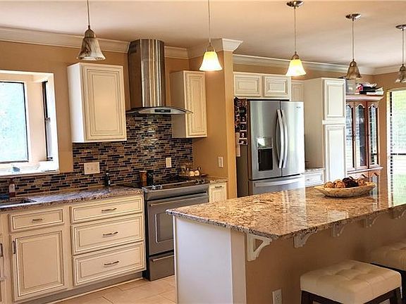 Bring your sweat equity and make this place shine like it once did. Needs work but has good potential. Renovated Kit is huge & offers island w/seating, slab granite, custom cabinets, stainless, custom backsplash & walk in pantry w/sliding barn door. Spacious rooms. Oversized Greatroom w/Cathedral clg & massive brick FP flanked by built-ins & wetbar. Primary has oversized bath w/sep shower & walk in. Winding driveway. Spacious grounds to watch the deer come up in the rear yard. Double garage. Flood zone C.