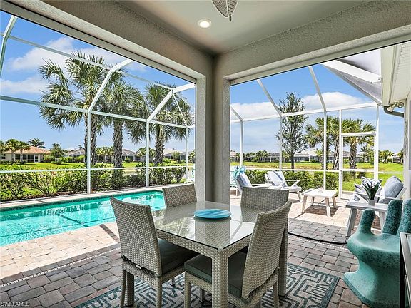 Live the Resort Lifestyle Every Day! Welcome to your dream retreat in the highly sought-after Tidewater 55+ active adult community! This stunning 2020-built Del Webb Abbeyville home boasts a private sparkling saltwater pool with wide water views, peaceful northern exposure, and a prime cul-de-sac location at 19’ elevation—no flood zone! Enjoy tranquil mornings and cool evenings on your lanai, complete with Storm Smart screens and surrounded by lush, mature landscaping. Thoughtfully upgraded throughout, this meticulously maintained home features impact windows, a new AC compressor (2025), salt chlorinator (2024), gas pool heater (2023), and a whole-house Kinetico water system with reverse osmosis. Inside, you'll love the high-end finishes: 8’ doors, soft-close cabinetry, frameless shower doors, custom closet systems, designer blinds, and stylish lighting. The open-concept floor plan includes a sun-filled Florida room, natural gas appliances, and an extended 4’ garage with an oversized driveway—perfect for guests or a golf cart. The spacious primary suite offers a luxurious walk-in shower, dual sinks, and ample storage. Tidewater's award-winning amenities complete the package: tennis, pickleball, bocce, resort-style pool, state-of-the-art fitness center, and a vibrant social calendar curated by a full-time lifestyle director. Centrally located near RSW Airport, world-class shopping, dining, and top medical care—this move-in ready home is Florida living at its best! MOTIVATED SELLER! *This home is sold with design services included. Ask for more details!