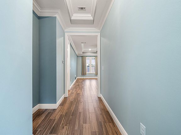 - Breakfast Bar, Crown Molding, Ceiling Raised, Ceiling Tray/Cofferd, Kitchen Island, Recessed Lighting, Pantry, Split Bedroom