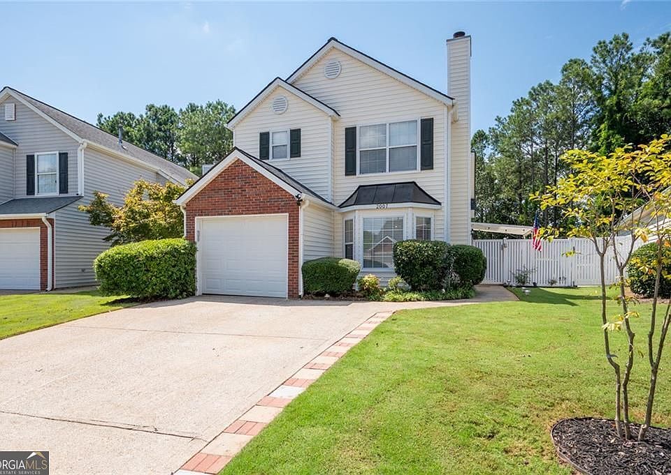 Best value in Britley Park-move-in ready 2BR/2.5BA with a welcoming covered patio and a spacious fenced backyard for play, pets, or relaxing. Peace-of-mind updates: roof ~5 years old, HVAC under warranty, and well-maintained throughout. Smart-home upgrades include Ring doorbell with security cameras, smart thermostat, Wi-Fi garage opener, and keypad front entry. Kitchen features brand-new quartz countertops. Both bedrooms are ensuite with walk-in closets; convenient half bath on the main. Low-maintenance living-HOA handles the yard maintenance. Prime location: minutes to Downtown Woodstock, parks, shopping, dining, and a nearby lake/campground, with quick I-575 access via Towne Lake Pkwy. Don't miss this one!