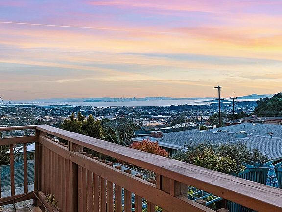 Panoramic views of the bay and SF in the El Cerrito Hills! Entertainers Paradise with expansive windows upon entering flood the space with natural light. Thoughtfully designed open floor-plan. Spacious updated kitchen, 1 bedroom plus a bonus office/nursery and full bathroom downstairs. Enormous primary suite upstairs including primary bathroom retreat and deck overlooking the Bay and SF. Freshly painted inside and out with hardwood floors. Step outside into the magical garden straight out of a story book Lots of entertaining spaces and lovingly cared for fruit trees, plants and flowers. Minutes away from Canyon Trail Park, BART, freeway, shopping and restaurants. This house is perfect for those who appreciate beauty, comfort, and an abundance of natural light. Hurry up, this one wont last!