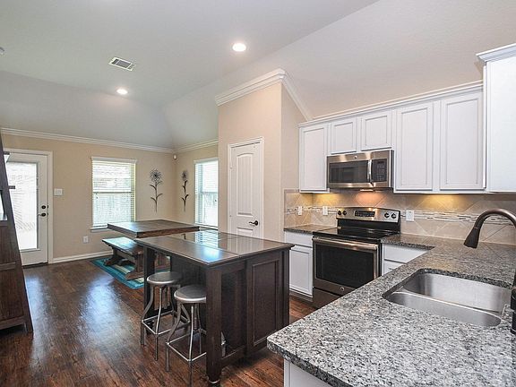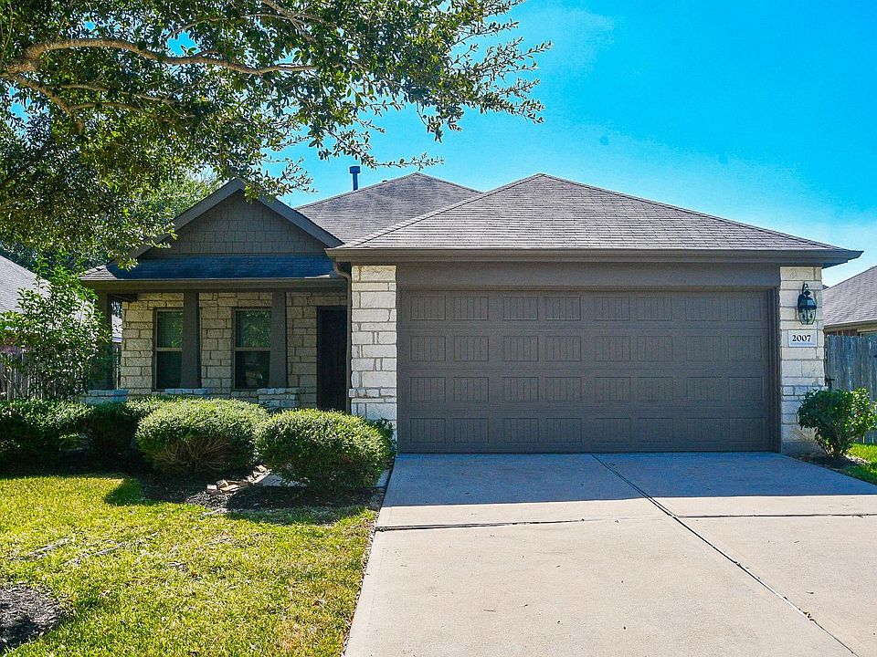 Welcome to 2007 Cobble Meadow- a charming single-story home in the Rosehaven/Walnut Creek Community in Rosenberg. Built in 2013, this well-maintained residence offers 3 spacious bedrooms and 2 full baths in a thoughtfully designed open-concept layout. The warm and inviting family room flows seamlessly into the kitchen and breakfast area, creating the perfect space for everyday living and entertaining. The kitchen features modern cabinetry, granite countertops, pantry, breakfast bar for additional seating, electric cooktop with the option to change to gas (gas line installed). The private primary suite includes a LARGE walk-in closet and a full ensuite bath with double sinks, separate shower and soaking tub. Step outside to enjoy the covered patio and backyard—ideal for relaxing or hosting weekend gatherings. Conveniently located near shopping, dining, and major highways for an easy commute. Move-in ready and waiting for you to call it home!