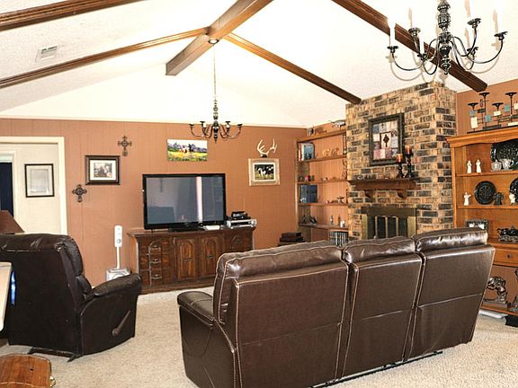 Excellent location! 3 bedrooms, 2 baths with a large living area. A pretty brick fireplace with vaulted ceilings and patio doors. The cute kitchen has a dining area and breakfast bar. Isolated master features a private bath with dressing area. Nice back yard with a covered patio. Also included is a super nice studio workshop.