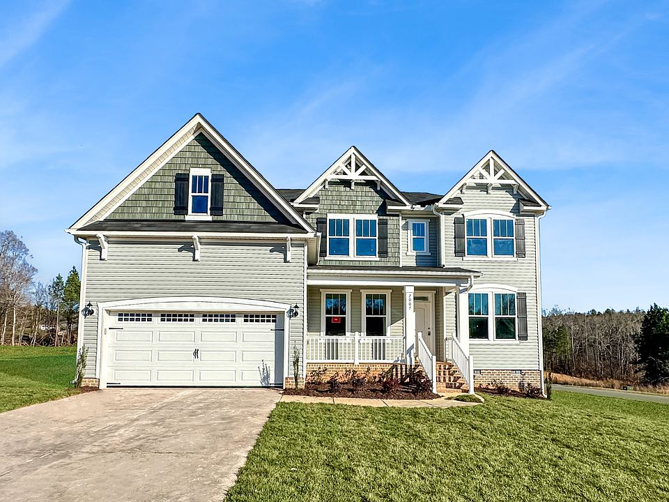 Welcome to our Redbud plan by Dream Finders Homes in Belews Ridge! This home is our largest plan with over 3,200 sqft and features 4 bedrooms and 2.5 bathrooms. You will fall in love with the openness of this home. As you walk in, enjoy the covered front porch that leads to a foyer welcoming you into the home. This is an open concept living space with a beautiful gourmet kitchen, casual dining and family room complete with fireplace for maximum comfort. This home also offers a formal dining as well and a main level powder room. Upstairs you'll have a secondary living space, owner's bedroom with a spacious walk-in closet, spa-inspired bathroom and attached laundry room. There are three additional bedrooms with a shared full bathroom upstairs to fit your entire family's needs.