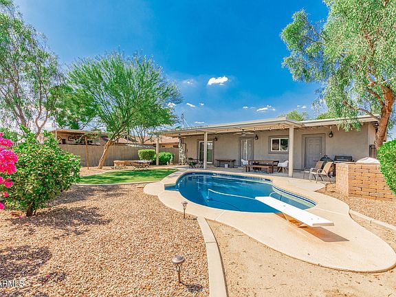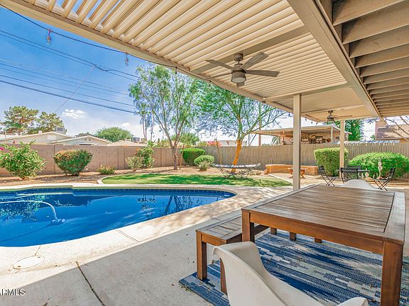 WOW! This home has it all! FOUR BEDROOMS, THREE BATHROOMS, GARAGE & BACKARD OASIS WITH SPARKLING POOL! Enter into SPACIOUS LIVING ROOM/DINING with all slate tile, newer light fixtures, fans, neutral paint color *Opens to REMODELED KITCHEN with updated dark maple cabinets, GRANITE SLAB COUNTERS, breakfast bar, STAINLESS STEEL APPLIANCES, designer backsplash, pendant lighting & walk-in pantry *SPARKLING POOL with upgraded PEBBLETEC finish, upgraded tile, autofill, a dedicated vacuum line and a variable speed pump *TWO PRINCIPAL BEDROOM SUITES (First one has patio exit to yard, TWO WALK-IN CLOSETS, double sinks, custom tiled shower) *SECOND PRINCIPAL BEDROOM has walk-in closet & remodeled bath, tiled shower *SLATE TILE FLOORING all through home *ALL DUAL PANE windows (most with plantation