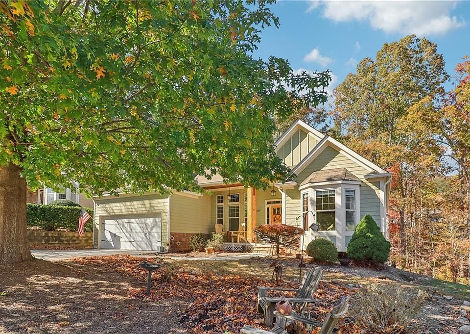 ***Golf Course***Finished Basement***2 Large Decks***Gated***Beautiful ranch-style home in the highly sought-after gated Lake Arrowhead community with scenic golf course! This customized open-concept floorplan features a fully finished walkout daylight basement, a main level with a luxurious primary suite, two additional bedrooms, a kitchen with a solid black walnut island, rich hickory hardwood floors, stunning exposed beams, sun-drenched skylights, and upgraded lighting throughout, creating a warm and inviting atmosphere. Sliding glass doors lead to a spacious back deck with a fireplace and stairs to a lower deck, perfect for entertaining. The basement includes a living room with fireplace, wet bar, full bath, a large woodworking shop, and an extra room currently used as a design studio with a murphy bed (convertible to a bedroom) with a covered deck overlooking a fenced backyard. Surrounded by flowering landscaping and mature hardwoods, the home offers access to community amenities including a lake, tennis and pickleball courts, parks, sports courts, scenic hiking trails, and more! This beautiful home can serve as your vacation retreat or retirement haven, where you’re sure to create many cherished memories. Book your tour today!