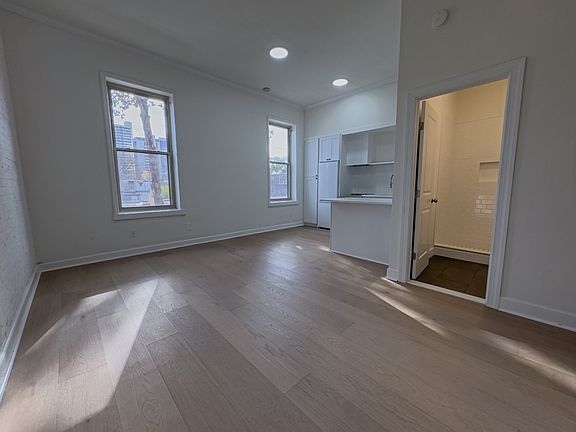 - Brownstone bones: high ceilings, hardwood floors, south-facing front windows that look out to Green Street and fill the space with natural light