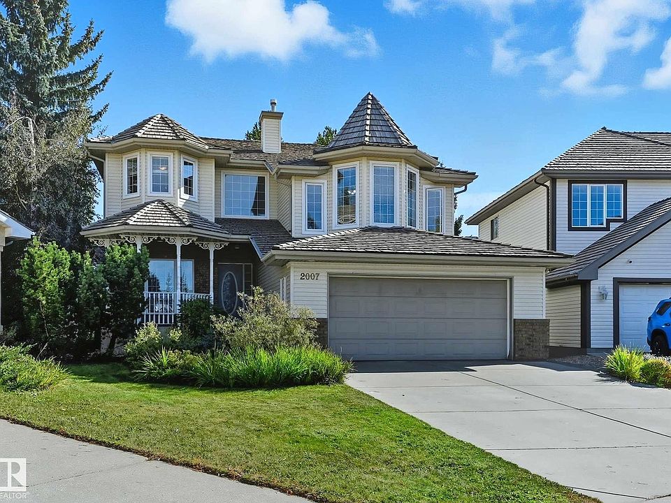 Meticulously maintained former Kimberley Showhome in Riverside on a 7,200sf LOT! Enjoy quiet mornings on the front porch nestled into a KEYHOLE LOCATION. Or enjoy the outdoors in a lrg yard surrounded by mature trees & water feature. Vaulted foyer upon entry w/ french doors leading to a spacious den (or 4th bdrm). Open concept kitchen (updated stainless steel appliances & corner pantry), living rm w/ fireplace, breakfast nook & dining rm. Main level complete w/ 2pc wshrm, mudrm w/ large walk-in coat closet & laundry. Upstairs find 3 generously sized bdrms + a large vaulted bonus rm. Spacious primary bdrm boasts a huge 5pc bthrm (incl jacuzzi tub). Finished basement offers additional living/games space. Features incl AC, hardwood, central vacuum, alarm system, underground sprinklers & more! Fantastic location near desirable schools, shopping, restaurants, Terwillegar Rec Centre, & transit. Parks & trails scattered throughout the community. Plus easy access to Henday & Whitemud. Quick possession available!