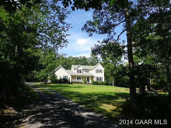 Incredible privacy! House barely visible from road! Lovely setting including orchard with 9 varieties of fruit trees. Possible second building site along road frontage for additional family member. Extra large rooms, great kitchen with huge island, outdoor wood furnace to lower heating costs, and unique master bath balcony that can actually serve as a hunting stand! You could divide huge LR to create 1st floor bedroom! 2-car attached garage plus 30 X 40 workshop with 2 bays and heated office.