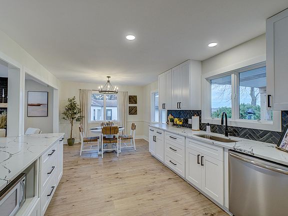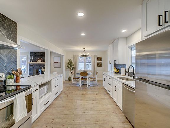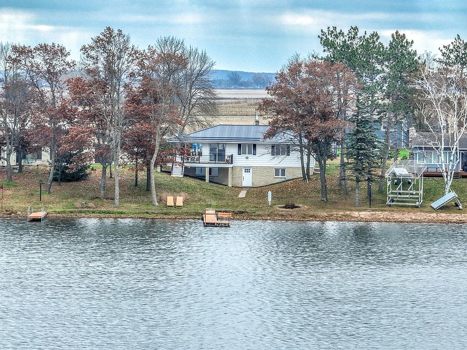 This luxury year-round w/o lake home is a stunning property that has undergone a total remodel from top to bottom. The home is situated on the best lake lot on recreational Bone Lake with approx. 94 ft of sandy lakeshore and offers breathtaking views of the lake. The kitchen has been completely renovated with a new layout, new cabinets, new quartz countertops, new tiled backsplash and new appliances. The entire interior of the home has new lvp flooring, new recessed lighting & light fixtures throughout and new tiled entryway. All interior walls have been freshly painted, & all the main level and LL ceilings have been scraped, painted and soffits removed with new trim throughout. The w/b fireplace on the main level has been updated with new paint and a new mantel. The LL of the home has been updated with a new tiled electric fireplace and 2 addt'l bedrooms. The new maintenance-free deck is perfect for entertaining guests. It's the perfect place to call home all summer and winter long!