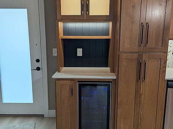 Custom built home by Fox Construction features rift sawn oak custom built cabinetry through-out with quartz countertops in kitchen, including appliances and beverage station. Large master bath with walk-in shower and walk-in closet. Spray foam insulation and maintenance free exterior with full unfinished basement. This home is enrolled in the neighborhood revitalization program qualifying it for approx. 95% property tax refund for a period of 10 years. Large lot for future shop in backyard