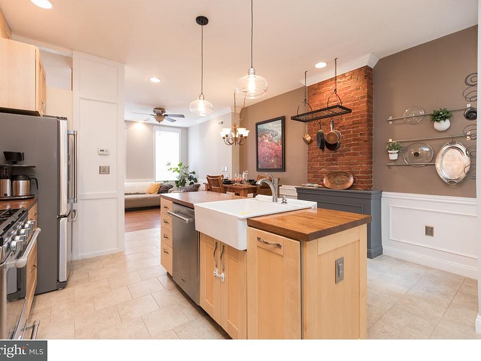 We love this 4 bedroom 2.5 bath 3-story home with over 1800 sq ft of living space and located in the highly desired South Kensington neighborhood. This home has tons of creature comfort's, attention to design, and timeless features. Every room has a *special touch* added like exposed brick, wood and stone elements, or accents such as wainscoting, recessed lighting, high ceilings, crown molding... The main floor open concept layout features a modern kitchen w/ farmhouse sink, waterproof solid butcherblock countertops, stainless appliances, 42" ceiling-height cabinets, pot rack, a breathtaking stone wall feature, and large walk-in pantry. The laundry room is conveniently located on the 1st-floor w/ front load W/D, plenty of folding space, and there is a full bath on the main level. The 2nd-floor has a 2 BR including the owner-suite w/ exposed beams and the 3rd-floor has 2 more lovely sun filled rooms each with so much character! There is a total of 9 closets throughout and endless storage in the 600sf basement which, btw, can be used as a play room/storage/creative space/etc. Bathrooms are updated and modern w/ pristine impeccibly paired subway and custom tile. Extra special info: Roof access w/ the potential for a lower and/or upper deck, charming yard with room to grill and chill, a one of a kind wood-clad exterior feature, 6' premium fencing, insulated and weather-sealed home (extremely low heating costs), dual-zoned high preformance HVAC, custom magnetized panels in front windows for sound and insulation, new water main, white reflective roof, all appliances included. Easy access to Center City with only a 4-10 min commute! You are going to fall in love with this home. We welcome your visit!