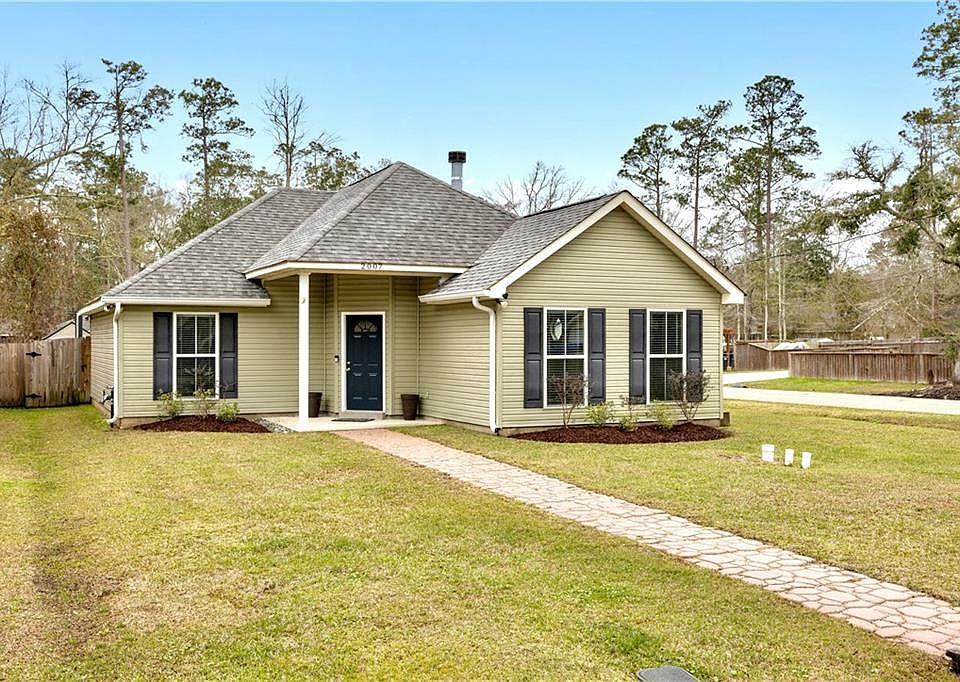 Move right in to this well-kept three bedroom, two bath home on a corner lot in Ozone Woods! Fresh updates including new paint throughout and carpet in the bedrooms. Large living space with great lighting. The primary bedroom features a walk-in closet & en suite bath. The fenced-in backyard offers two covered spaces complete with patio furniture and a storage shed. Flood zone X, minutes from schools, shopping and I-12. Schedule your showing today!