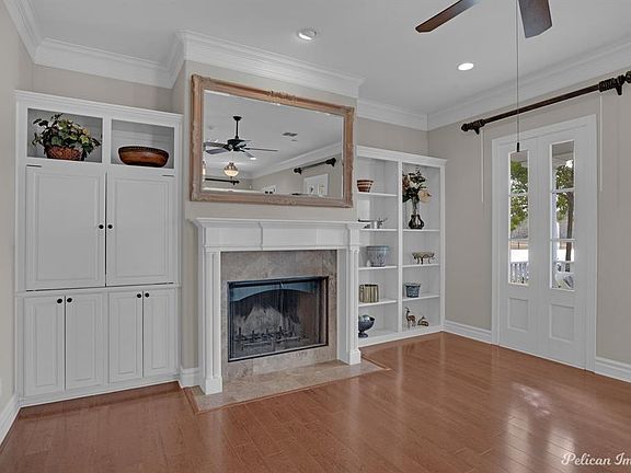 Waterfront propertyStorage cabinetsPorches overlooking the lakeLarge islandWood flooringSouthern architecture home