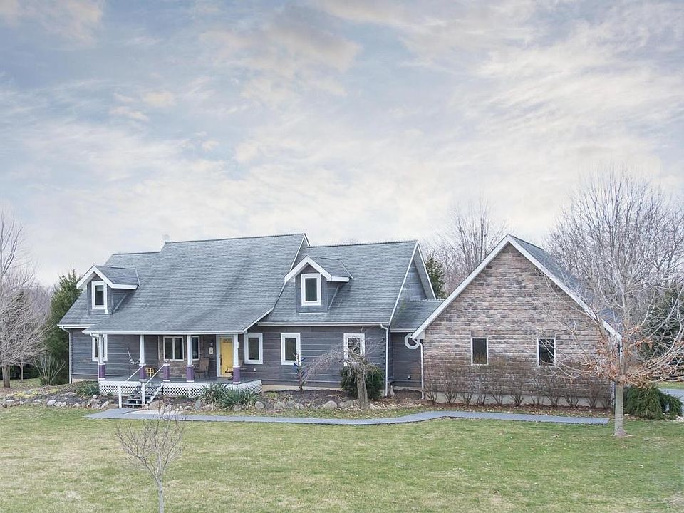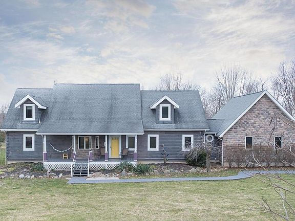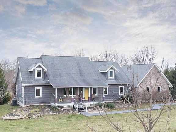 If you love nature's beauty, come home to this amazing riverfront ranch-style log home on nearly 2 acres w/an impressive great room/fireplace, over-looking loft, and very open ''post and beam'' style feel! Also featuring a fully equipped/updated kitchen w/center island, 1st flr laundry/mud room, updated baths, 1st flr owners suite, 2000+ sq. ft., hickory ''wood'' laminate flooring, 9 ft. poured basement walls, and multiple walls of glass framing a spectacular view of trees and the river! Exterior highlights include an expansive covered rear deck (60 ft. long) w/hot tub, covered front porch, stone veneer, 2+ car side load garage, fruit trees and perennial garden! Newer heat pump (2015)! NexGen Access (for internet) and Delco water service this property!