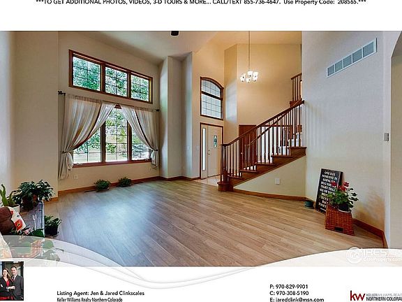 Backup offers welcomed. Beautiful home in popular River West, backs to picturesque wooded open space and across from Poudre River Trail bike path. Natural light floods the home as large windows brighten the 2 story living room and family room. Well-designed kitchen with island and pantry. Formal dining room, large office & laundry room also on main. 5 piece master bath. New laminate flooring and new exterior and interior paint. 3 car garage. Hike or ride the path across the street!