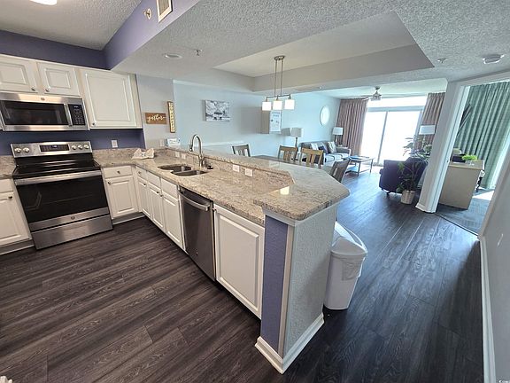 Unit 1701 offers a unique opportunity to grab your slice of paradise in Myrtle Beach. With a premium 17th floor end unit location, the views simply can't be beat. This 4 bedroom 3 Bath oceanfront unit is impeccably maintained with modern upgrades throughout. Enjoy waking up to ocean views and the sounds of crashing waves from your oceanfront main bedroom. You'll also find all the comforts of home including a full kitchen with full-size appliances, multiple bathrooms, and an in-unit washer\dryer. Additional conveniences of the Grand Atlantic include interior corridor access, attached parking garage, onsite office for rental guest registration, seasonal gift shop and restaurant, fitness center, game room and more. Inside, the unit features a multitude of upgrades including LVP flooring in the main areas, stainless appliances, modern carpet tiles in the bedrooms, backlit LED bathroom mirrors, ceiling fans throughout and higher end furnishings. Schedule a showing today and grab your chance to own in the sought after Grand Atlantice Resort.