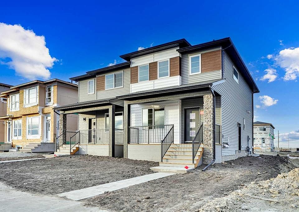 Welcome to this beautifully upgraded semi-detached home in the heart of Cornerstone, perfectly positioned facing green space and an environmental reserve! Offering exceptional curb appeal with its charming front verandah, this 3-bedroom, 2.5-bathroom home combines modern design, thoughtful upgrades, and functional living spaces ideal for families. Step inside to an open-concept main floor featuring 9 ft. ceilings, elegant knockdown ceilings, and large windows that flood the space with natural light. The gourmet kitchen is a standout, complete with quartz countertops, a spacious island, chimney hood fan, and ample cabinetry—perfect for cooking and entertaining. The dining and living areas flow seamlessly, creating a welcoming atmosphere. Upstairs, you’ll find a generous bonus room, ideal for a second living space or home office. The primary bedroom includes a spacious walk-in closet and a beautifully appointed En-suite with Walk- In shower. Two additional bedrooms, a full bathroom, and convenient upstairs laundry complete the upper level. A key feature of this home is the separate side entrance, offering excellent potential for future development. The basement also features 9 ft. ceilings, and rough- in for bathroom, 2 egress windows , providing a bright and open feel, ready for your personal touch. Additional highlights include: Smart home technology, Quiet location with front views of green space and natural reserve, Close to pathways, shopping, schools, and future amenities This exceptional property blends comfort, style, and opportunity—perfect for homeowners or investors alike. Don’t miss your chance to own a beautifully upgraded home in one of Calgary’s most desirable growing communities!