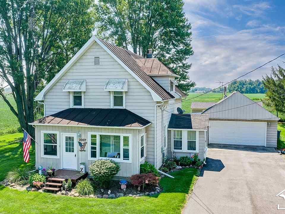Beautiful Erie Twp. home on a nearly 1-acre, tree-lined private lot. Main floor bedroom and full bath. 2 large bedrooms large closets upstairs. Also upstairs is a 14x7 "Bonus" open area/perfect office Huge garage loft storage, work bench, generator. Replacement windows. Newer gas boiler & AC air handler. Clean basement glass block windows. Updated electric. 2 large sheds. Covered rear patio overlooks tranquil crops.