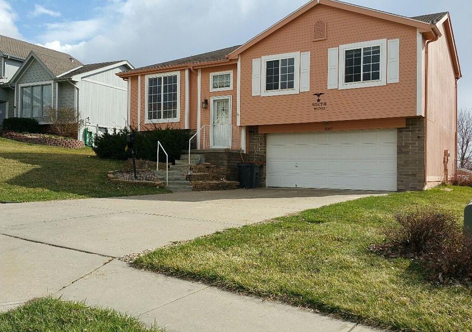 For rent in Bellevue, beautiful 3-bedroom, 2-bathroom house with 2-car garage. Clean, spacious, great neighborhood. Hardwood floors in kitchen and dining. Fenced backyard with storage shed. Deck is great for entertaining. Nice view. Nicely finished walkout basement with a large window and a fireplace. Very versatile to fit your needs. Close to Offutt Air Force Base, Bellevue University, dining, and entertainment. Immediate highway access (HWY 75 and HWY 370).
