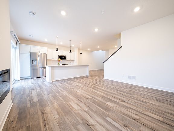 Looking for a newly constructed townhome in Corcoran, well look no further! Never has new construction looked this good! This stunning townhome in Corcoran offers beautiful interior finishes and ideal layouts. The main level has a large open concept connecting the family room, dining room and kitchen, perfect for entertaining. The kitchen offers beautiful granite countertops, stainless steel appliances, and white cabinets. The large center island is perfect for prepping food or entertaining guests, and acts as the center stage of the entire room. There is a large family room with recessed lighting, electric fireplace, carpet flooring, and plenty of large windows for natural light. Dining room area off from kitchen works well for larger tables. Private patio space right off back of the home overlooking good green space! The upper level has 3 bedrooms, two bathrooms and a laundry room. All bedrooms are good size, but best yet is they all have great closets space as well. The master bedroom offers plenty of windows for natural light, as well as a gorgeous bathroom and large closet. Washer and dryer located on the upper level as well making doing laundry a breeze. You won't want to miss this fantastic home! Home has forced air heating and central AC as well.