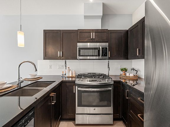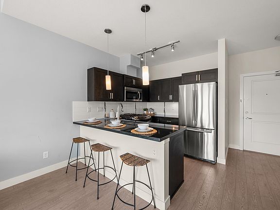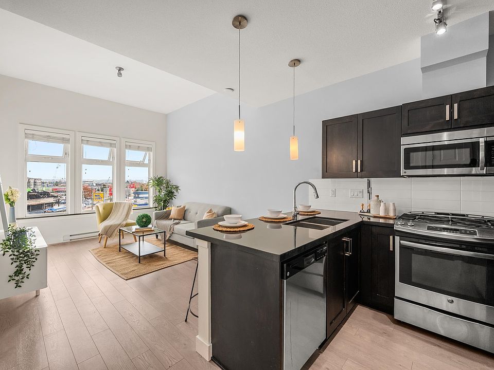Welcome to Varsity—modern living in the heart of Langley! This bright & inviting 1 bed, 1 bath condo on the top floor offers open-concept living space featuring gourmet kitchen with granite countertops, S/S appliances & gas stove. Spacious bedroom has walk-through closet leading to full cheater ensuite, while high ceilings & large windows fill home with natural light. Near Willowbrook Shopping Centre, Costco, Cactus Club, Save-On-Foods, Shoppers Drug Mart, Kwantlen Polytechnic University (Langley Campus), parks & more! Excellent for commuters with bus routes minutes away, close to upcoming Langley SkyTrain extension & easy access to Fraser Hwy, Hwy 1, Hwy 10 & Hwy 15. Includes 1 parking & 1 locker—perfect for first-time buyers or investors seeking style & convenience in a prime location!