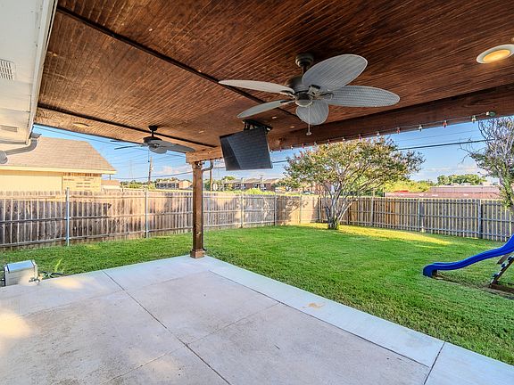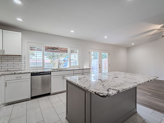 Welcome to this charming single-story home nestled against the beautiful Bluebonnet Trails. Boasting an open and airy floor plan, this residence is filled with natural light and features patio doors that open to a serene and private backyard. The kitchen has been updated with stunning flooring and showcases an oversized granite center island and stainless-steel appliances. The outdoor space is perfect for entertaining, with a covered patio that serves as an additional living area, complete with a TV and ceiling fans — and yes, the TV stays! This home features three bedrooms, with the primary bedroom thoughtfully positioned on the opposite side for added privacy. Enjoy cozy evenings by the wood-burning fireplace in the living area and appreciate the elegance of plantation shutters throughout. Situated within walking distance to three parks, a dog park, and Jack Carter, this home offers a perfect blend of comfort and convenience. All new flooring & freshly painted! It’s truly move-in ready; waiting for you to make it your own!