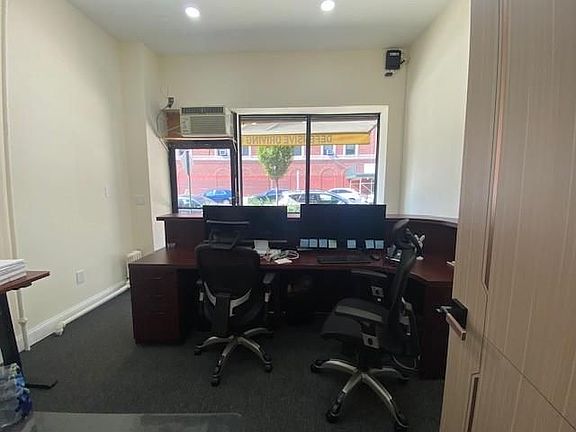 For Rent Office space Heat and water included. Tenant pays his own electric. Fully renovated, modern high-hat lights, just painted, new carpeting. There is a secretary`s front counter included. Gates have automatic remote control. Office has AC/Heat, half a bathroom, 2 rooms: waiting room with reception desk, separate office room. Great convenient location. The office has a large window display. Very convenient location, close to shopping, stores, schools, etc. Close to trains D & Q and buses. (Listing 3310603 Confirmed 10/3/2025.)