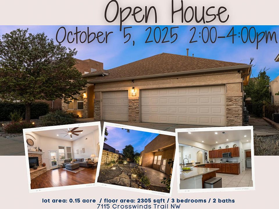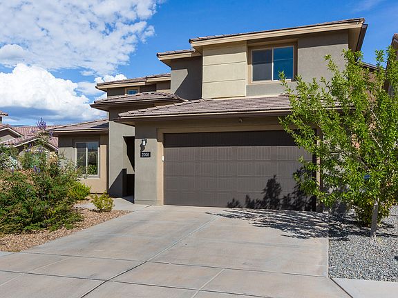 Move In Ready! Contemporary, Light filled home where your plants will thrive!Main floor features primary bedroom, pleasant office or sitting room, great room w/raised 2 story ceiling open to kitchen and dining. Speaking of kitchen, it's great!Tons of granite counter space w/a breakfast bar, stainless appliances, gas stove, & pantry. Easy access to cheerful dining room which has patio door to rear covered patio. Generous primary bdrm w/spacious bath including double sinks, shower & large walk-in closet. Upstairs is a large loft which separates 3 bedrooms and a full bath and makes a great workout space, TV room or play room. 3 car tandem garage .Tankless H20 heater, Refrigerated cooling. Fully landscaped front and rear yards. Lovely neighborhood parks to visit. Near Sandia labs & Kirtland.