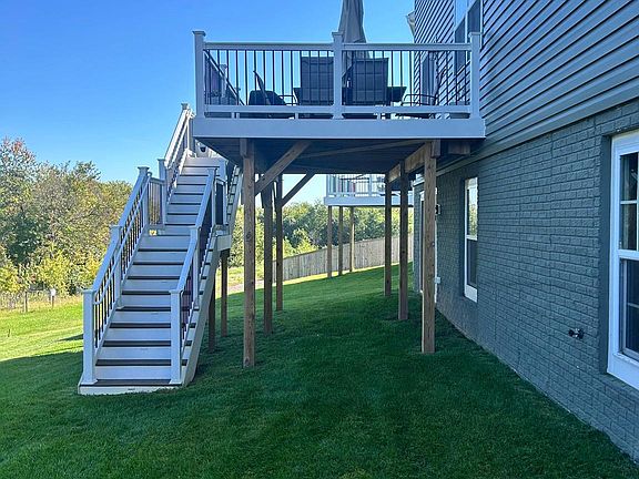 Built in 2021 by DR Horton, this 5-bedroom, 3-bathroom home pairs timeless brick with modern dark siding for eye-catching curb appeal. A welcoming front porch sets the stage for relaxing evenings or festive holiday décor. Inside, thoughtful details abound, starting with a den/office at the entry, 9-foot ceilings, and a charming mudroom area with built-in hooks and shelving. The open layout seamlessly connects the kitchen, dining, and family room, with sliding glass doors leading to a large composite deck, perfect for dining al fresco. The kitchen offers granite countertops, sleek dark cabinetry, gas cooking, a generous pantry, and a statement island with board-and-batten accent. High traffic areas on the main level are finished with LVP flooring for durability and easy maintenance. A main-level bedroom and full bath add convenience for guests, multi-generational living, or just flex space. Upstairs, the primary suite features an en suite with dual sinks, water closet, walk-in shower, and a huge walk-in closet. Three additional bedrooms share a full bath with dual sinks and a tub/shower combo. The spacious loft can be used as a playroom, second living area, or home office, and also includes a bonus closet for extra storage. An upstairs laundry room and oversized hall storage closet add everyday ease. The finished basement includes a rec room with plush carpet and walk-out access to the backyard. Two unfinished areas provide ample storage, one with a rough-in for a future full bath and another with a full window, ideal for a potential 6th bedroom. Step outside to a spacious composite deck with illuminated steps, overlooking the lush lawn and tranquil wooded views. Enjoy the sounds of Little Tuscarora Creek in the distance (not in a flood zone!) and direct access to walking/jogging paths. Under-deck space adds storage or play options. Additional highlights include a 2-car garage with an EV charger as well as paved driveway for more parking. This sought-after location places you close to an array of dining, shopping, and entertainment options, as well as the vibrant charm of Downtown Frederick. Everyday conveniences like Wegmans, Walmart, and Medical Centers are only minutes away. Nestled just off Monocacy Boulevard, the community also provides easy access to major commuter routes.