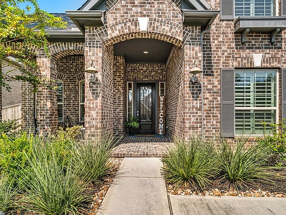 Don’t miss the opportunity to see this beautiful 1.5 story all brick home in the highly sought after gated community of Woodtrace. The covered front porch invites you into this stunning home. It has 4 bedrooms, 3.5 baths, private study, inviting family room, formal dining room and gourmet island kitchen with breakfast bar, double ovens, built-in ice maker/dry bar area, granite counter tops, hardwood flooring throughout most of the home and 3 car split garage. The luxurious primary bedroom has an ensuite bathroom with garden tub, separate shower, double vanity and large walk-in closet. If you love entertaining, the salt water heated pool/spa, large patio area, sprinkler system, landscape lighting, and meticulously landscaped lawn await. There is a decked attic space that could be made into a media room. Located minutes from FM 249 and the Woodlands, you have easy access to shopping, dining, and top-rated schools. Woodtrace offers walking trails, parks, community pool and so much more.
