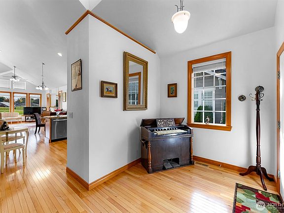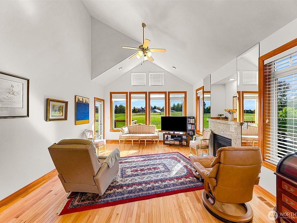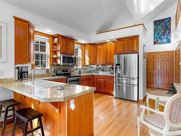 First time on the market for this stunning Homestead home on the 17th tee! With views of Mt. Baker & the Sisters from both decks, this beautiful 3 bed + office space, 2.5 bath home boasts custom features including hardwood floors throughout, spacious kitchen with granite countertops & stylish tile finishes. Light floods the main living space with soaring vaulted ceilings & granite fireplace. Retreat to the main level primary suite with en suite bathroom, jetted tub, bidet toilet, walk-in closet & private deck. Bedroom closets have custom closet organizers & all windows are coated with UV protection. The spacious garage features an epoxied floor & wash basin with plenty of room for parking & storage. Schedule your private showing today!