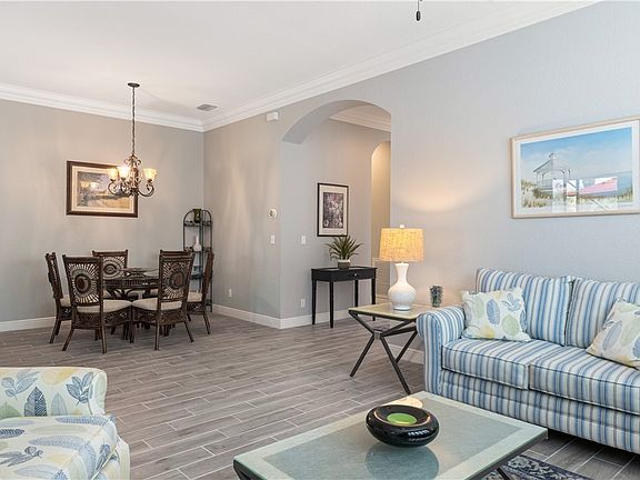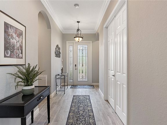 Nestled in Falcon Trace, this Lakefront gem offers 4 bedrooms, 3 baths (Gabriella Model), and a meticulously designed interior with fresh paint, Italian porcelain tiles, plantation shutters, granite c-tops, and crown molding; durable Ox garage floors, accordion shutters & newer HVAC and HWH. Spacious owner's suite with elegant features including tray ceilings, separate closets for him & her, dual vanities and Roman tub. Step outside to an extended screened lanai overlooking the picturesque lake, complemented by a fenced backyard. Resort style amenities! Can be sold turnkey! sz apx. & sbj to er