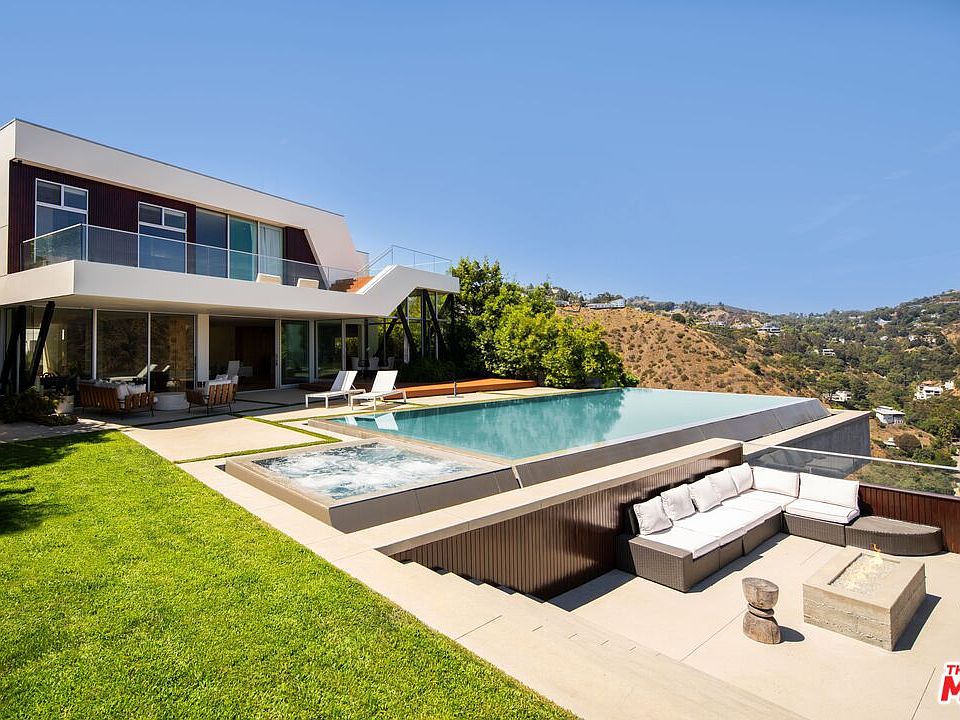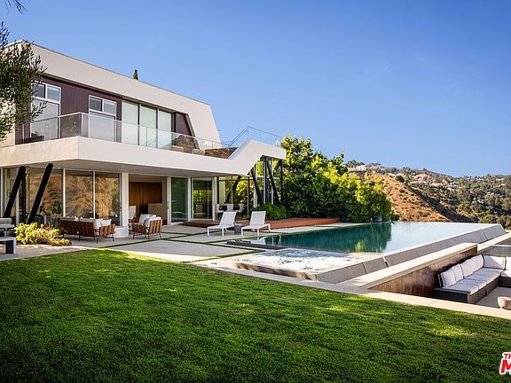 Behind gates on a rare flat lot in Mount Olympus, this private retreat captures unobstructed panoramic views that stretch from downtown Los Angeles to the ocean. A grand motor court welcomes you to a nearly 6,200 SF residence designed for elevated living and effortless entertaining. A soaring two-story glass conservatory, expansive living and dining rooms, and an open-concept kitchen with sliding glass doors invite seamless indoor-outdoor living while overlooking the skyline. The backyard is one of the few truly flat lots in the hills, featuring an infinity edge pool, spa, fire pit lounge, multiple patios, and a grassy lawn, all set against a world-class backdrop. The primary suite opens to its own private terrace with breathtaking views and includes a sitting area, spa-inspired bath, and custom walk-in closet. Three additional bedrooms and five bathrooms complete the spacious layout. Perfectly positioned above the legendary Sunset Strip and moments from West Hollywood, Beverly Hills, and Hollywood, this is a rare chance to own a private retreat that combines scale, privacy, and one of the most iconic views in Los Angeles. A lifestyle reserved for the few.