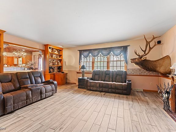 Welcome to 2008 Logan Gate, a spacious and well-appointed home located on a scenic 1.14-acre corner lot near the prestigious Youngstown Country Club. This 4-bedroom, 3-full-bathroom residence blends comfort, function, and elegance in one ideal package. The inviting front porch sets the tone, offering a peaceful place to relax while enjoying the surrounding views. Step inside to a tiled foyer that flows into a formal living room, also featuring tile flooring and French doors that open into a large family room with a cozy fireplace and custom built-ins, perfect for everyday living or entertaining guests. The eat-in kitchen is loaded with cabinet space and features tile countertops, a coordinating backsplash, stainless steel appliances, and a walk-in pantry. Just off the kitchen, the formal dining room showcases rich hardwood flooring, offering a great space for gatherings. A spacious mudroom with tile flooring connects to a large first-floor laundry area, a home office with built-ins, and a full bathroom with a tub surround. From here, you'll also find access to the back deck and the oversized attached 3-car garage. Upstairs, four generously sized bedrooms offer an abundance of closet space. The primary suite is a true retreat with a massive walk-in closet, luxurious en-suite bathroom featuring a walk-in tiled shower with glass doors, a relaxing jacuzzi tub, and dual single vanities with vessel sinks. The hallway has second full bath, which cleverly separates a tub/shower combo and vanity from an additional sink and dressing area with a pocket door for extra privacy. One of the bedrooms also offers access to a walk-up attic, perfect for extra storage. The basement is waterproofed, featuring 12-course block construction and ample room for a rec area, workout space, or additional storage. Mechanical highlights include a high-efficiency furnace and A/C, 200 amp service with a 100-amp subpanel, glass block windows, vinyl siding, 3-tab shingle roof, and a storage shed.
