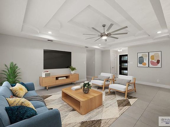 Beautiful 3-bed, 2-bath home perfectly located in desirable north McAllen—minutes from top-rated schools, shopping, and dining. This open-concept design offers spacious living and dining areas that flow seamlessly with an oversized granite countertop in the kitchen—perfect for entertaining and family gatherings. Featuring durable tile flooring throughout, this 1,720-sq-ft home blends comfort and convenience with numerous updates: new bathrooms and flooring (2 yrs), new front and back doors, and stylish light fixtures throughout. Additionally, all appliances and security cameras convey with the property. Outside, relax behind a 10-ft privacy fence with a full sprinkler system, security cameras, and a covered patio perfect for grilling.