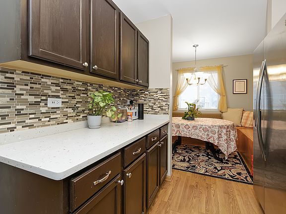 Welcome to this beautiful, end-unit townhome located in a desirable neighborhood! This 2-story home offers 2 bedrooms and 2.5 bathrooms. Main level features lots of natural sunlight, large family room, half bath and updated kitchen with s/s appliances and quartz countertops. Dining room is finished with a custom built-in banquette and opens up to a living room with a balcony.Both bedrooms are loctaed on the second story, both include large private bathrooms. A finished basement adds additional living space, perfect for a home office or gym. Some of the most recent upgrades include a Lennox HVAC system 2019, water heater 2018, garage motor 2023.