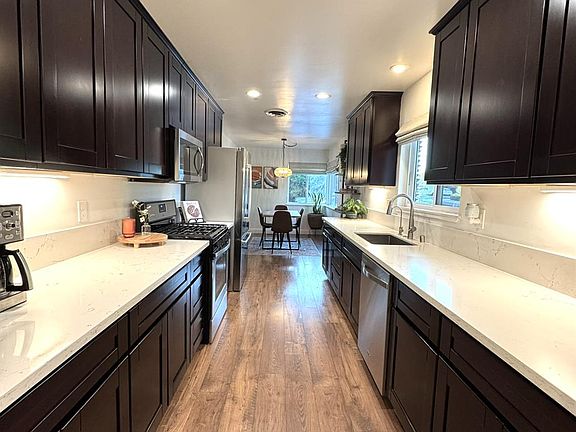 Freshly replastered poolPrivate backyardMature treesContemporary finishesFilled with natural lightStainless steel appliancesStylishly remodeled baths