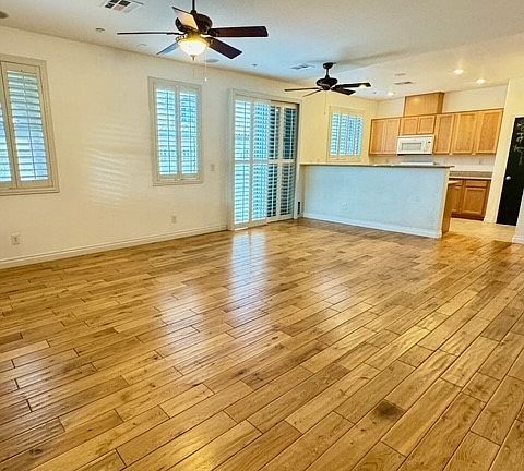 This detached Inspirada home boasts hardwood floors throughout, a luscious grass frontage, mature landscaping, is zoned for Ellis Elementary and located only a short distance from Solista Park. Take a short stroll to Solista park for an abundance of great amenities, such as live music at Romano Mercato Italiano, farmers markets, one of the many community pools, children's play areas and tons of tree lined walking paths. Once inside you will appreciate the open concept living/kitchen area, complete with granite countertops, stunning shutters and loads of natural light. Upstairs find a primary retreat with a front facing balcony, plus 2 further bedrooms, an additional full bathroom AND a mini loft for your home office needs! Enjoy your private yard and evenings watching the beautiful sunsets. Home comes with all appliances including new washer/dryer and new furnace. Other benefits include newer Lennox AC unit, 5.1 built in surround sound and reverse osmosis in the kitchen.